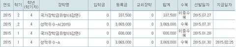 이번에는 7분위로 선정되서 33만원이네요... 등록금도 400만원 가까이 되는데 ㅠ...