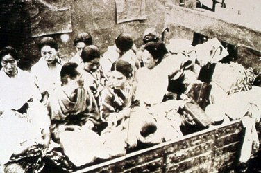부산에 갔더니 이미 열대여섯 명의 여자들이 와 있었다. 우리 18명은 1942년 7월10일 부산항에서 배를 탔다.