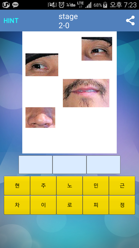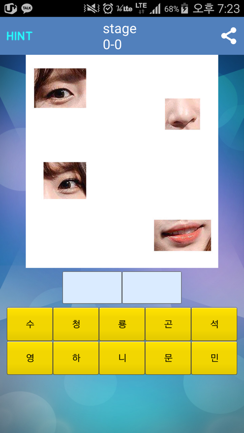 어플 설명 : 스타의 눈코입의얼굴만으로 이름을 맞춰보세요!