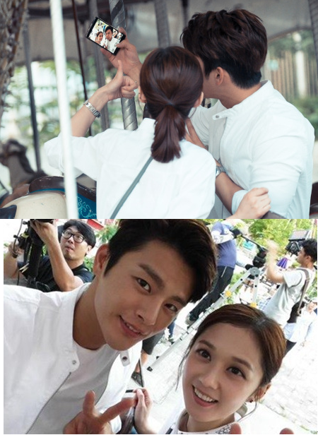 이렇게 촬영준비하다가도 셀카 삼매경에 빠져있는 요 커플