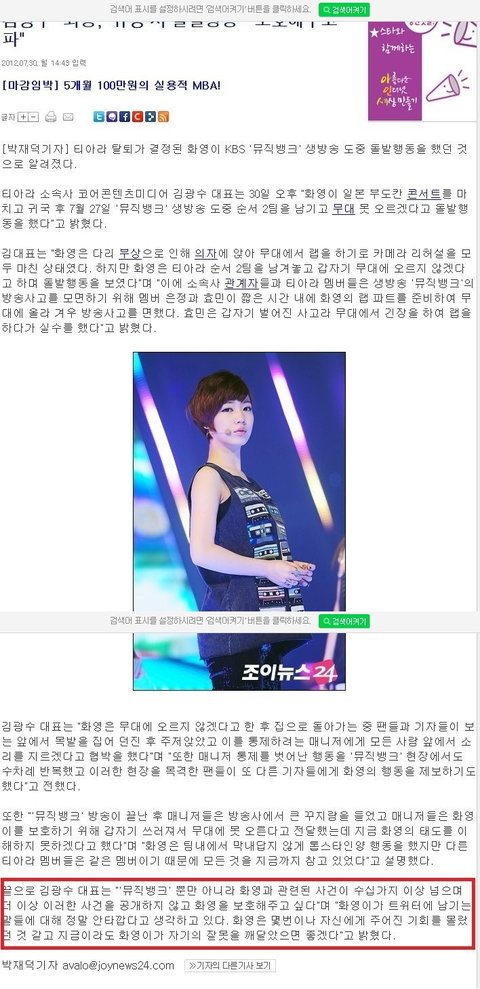 전멤버 아름도 티아라 응원하는거보면 아직 우리가 모르는 일들이 더 많을듯 류화영이 무슨일로인해서 왕따설이 딱 터지고 퇴출됬는지