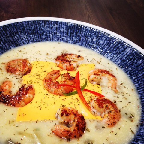 1인분재료비 새우 7마리 1750원 ,양송이스프(1000원/2 반만넣었어요) 치즈한장 200원