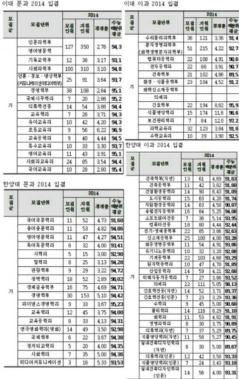 서성한이랑 차이 많이 난다시길래 아래는 한양대랑 인풋 비교표
