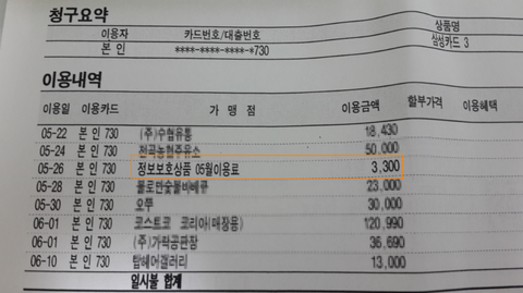 여러분도 삼성카드 이용내역서 꼼꼼히 살펴보세요.
