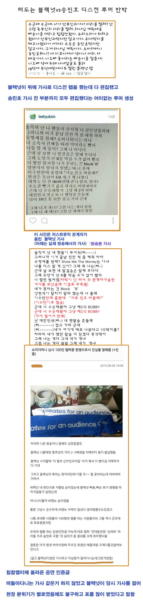 송민호가 더 잘했다고 하면 빠순이고 블랙넛이 더 잘했다고 하면 힙합퍼임? 지금 누가봐도 팬빨 넘치는 건 블랙넛인데ㅋㅋㅋㅋㅋㅋㅋㅋ 걔들은 팬도 아님 광신도들이지 안 그래도 까일 거 많은 애한테 더 까일거리를 광신도들이 친절하게 생성해주시네
