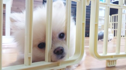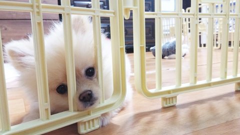 잠깐 울타리에 넣어놨어요ㅠㅠ 지금 10개월 된 크림이는 엄마가 밥 먹을 때 무지 얌전하지만