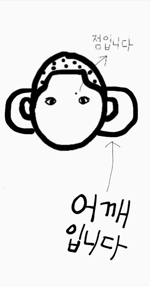 그 남자가 사람이였던건지 귀신이였던건지는 아직도 잘 분간이 가지 않습니다. 기억나는거라곤 위 그림과 같이 미간에 있던 점과 쌍커풀이 짙은 작은 눈 ,까까머리였습니다. 상상했던 귀신이란것들과는 달리 너무나 평범하게 생겼었기 때문입니다.