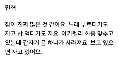 지금도 아육대에서 졸고 있다던데 ㅋㅋㅋㅋㅋㅋ