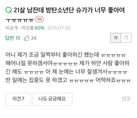 21살 남잔데 방탄 슈가가 너무 좋아요ㅠㅠ (네이버 지식인)