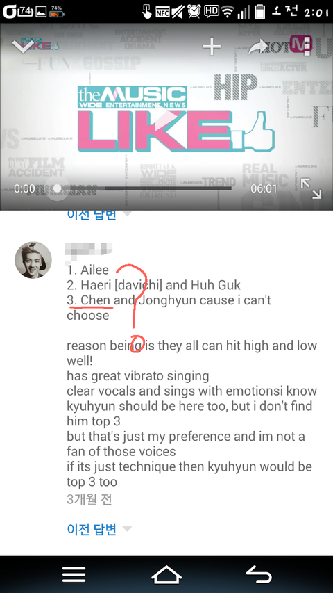 와 대박인 마지막이다 ㅋㅋㅋㅋㅋ 이분제발 팬코라고 해주세요 이름은 엑셀아니신거 같은데 저렇게 말하닠ㅋㅋㅋㅋ솔직히 나한테는 첸이 짱이다!도 아니고 다른 아이돌 다꺼지라니 저기가 첸 직캠영상도 아닌데욥