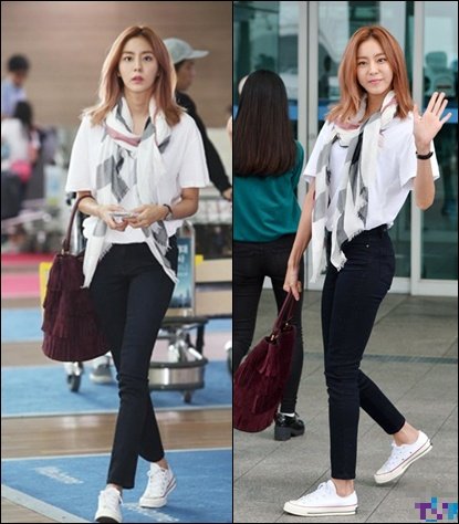 오늘자 공항에서는 컨버스 스니커즈 신고 나타났는데