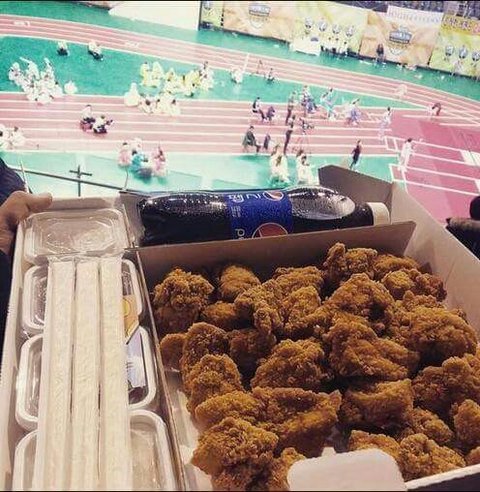 아육대에서 엑소가 팬 2인당 1마리씩 치킨공급...