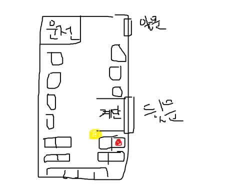 그림이 좀 장애같지만 무튼 저 빨간색으로 표시된곳에 앉았어요.