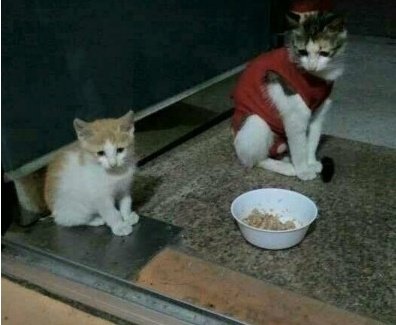 사람 잘 따르고 애교많은 아이라서 불쌍히여긴 동네분들이 밥을 챙겨주면서