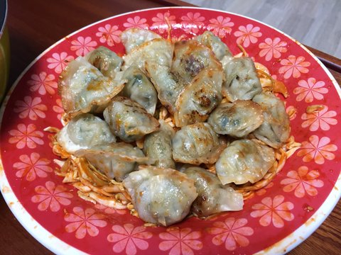 비빔만두예요 만두만 구우면 된다고들 하시는데 밑에 깔린 양배추무침의 맛이 있어야 비빔만두의 완성이죠ㅋㅋ
