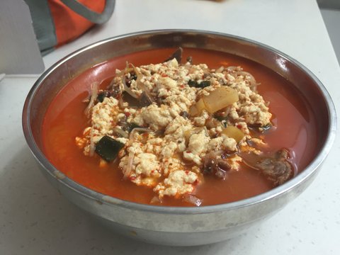 소고기 순두부 찌개? 국? 따로 이름은 없는데 그냥 지은거예요ㅋ소고기국과순두부찌개의 만남ㅋㅋ밥말아먹으면 한끼해결!!