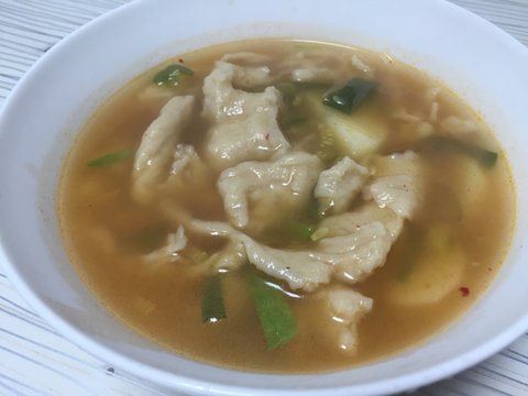 감자수제비~~반죽 직접해서 육수우려내서 만든거예요 ㅋ색깔이 좀 이상하긴하지만 얼큰하고 맛있어요 비오는날 한그릇먹으면 최고!!