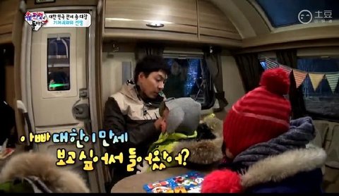 "아빠 대한이 만세 보고 싶어서 들어왔어?"