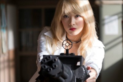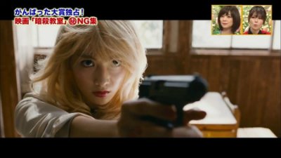 영화 첫 데뷔작 <암살교실>에서의 지영양... 금발 머리에 러시안 레드 립스틱으로