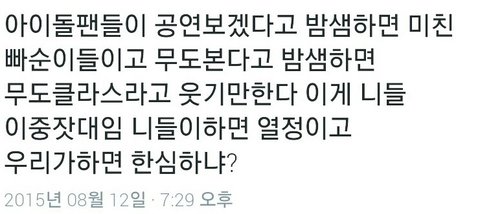 음~~같은 사건이 터져도 남자아이돌한테는 관대하고 여자아이돌한테는 가혹한 니네들이 이중잣대?????풉 ㅋ 덕분에 웃고가네