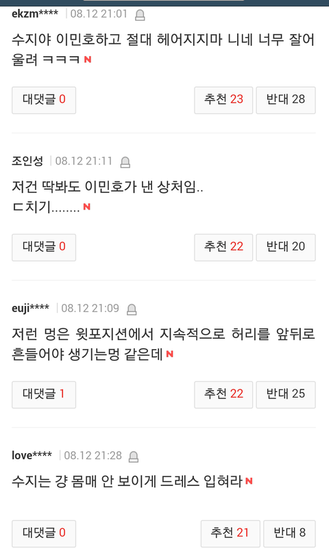 수지기사 악플 수준ㅉㅉ