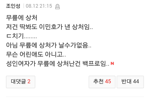 조금만 부딪혀도 멍 잘드는 사람 있음. 난 기사제목 보고 어디 다쳤나... 그런 생각했는데, 뇌구조가 어떻게 생겨먹었으면ㄷㄷㄷㄷ