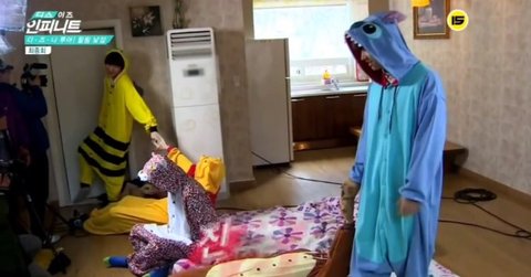 명수랑 손 연결된 성규가 바다에 드러눕자