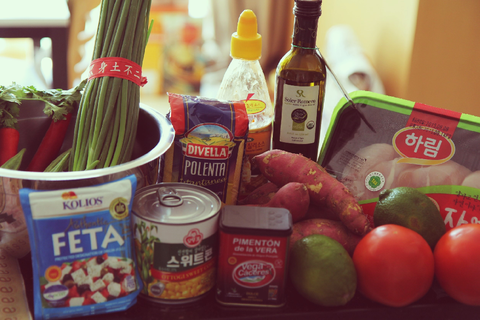 폴렌타가루, 훈제파프리카, 스위트콘, 페타치즈