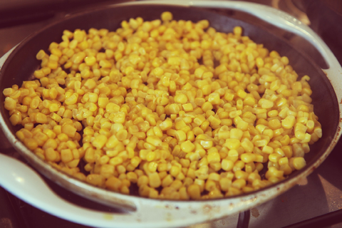 옥수수 통조림을 따서 팬에 살포시 구워줍니다.