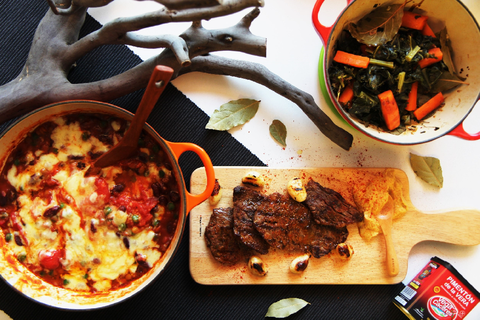 4. 체다치즈 얹은 멕시코풍 콩조림과 케일찜 그리고 등심스테이크