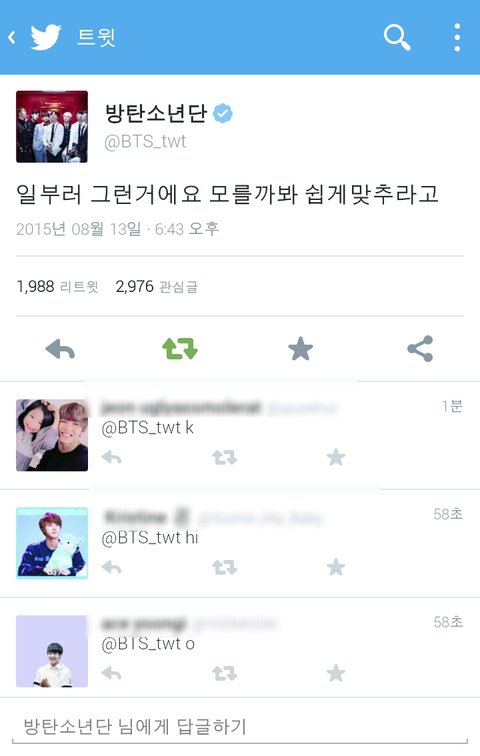 한국팬들이보낸 멘션들은 저거땜에 잘보이지도않구... 다른아미들은 어떻게생각해?? 난 좀그래