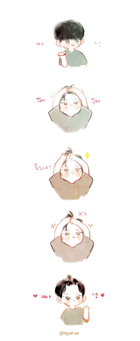 사과머리 직접 묶는 시우민 ㅋㅋ