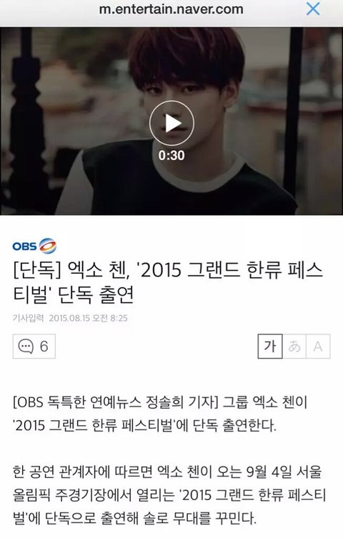[단독]엑소 첸 2015그랜드 한류축제 단독출연
