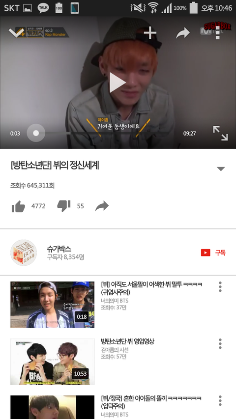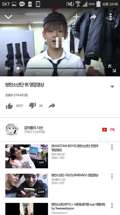 보고 왔지만 뷔가 어떻게 생겼는지 잘 몰라서 유튜브에 뷔를 검색해봤다.