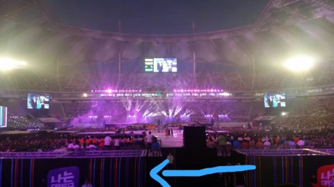 이거 내가 찍은 사진인데 발그림 미안..아무튼 저기에 나는 대한민국 천막이있어 갑자기 애들이 저기 입구에서 천막으로 지나가는거야ㅜㅜㅜㅜ아 그리고 내가 2층 2열에 앉아있어가지고 정말 잘보였어ㅠㅜㅜㅜ그래서 저기서 애들 오는거 발견하고 막 봉 흔들었어..그래서 이제 두번째 사진처럼 첫번째 천막에서 두번째 천막으로 막 하나둘씩 들어가는데 진짜 와 다들 미쳤더라ㅜㅜㅜㅜ진짜 너무 잘생겼엉ㅜㅜㅜㅜ아무튼 그래서 그렇게 들어가다가 갑자기 카이나와서 종인아!!!막 이랬는데 우리쪽보면서 피식 웃더니 다시 들어갔엉ㅜㅜㅜㅠ엉헝헝ㅜㅜㅜㅜㅜ진짜 죽는줄ㅜㅜㅜㅜㅜ와 무대는 잘안보였지만 종인이의 웃음은 잊혀지지가 않아ㅜㅜㅜㅜ엉엉ㅠㅜㅜㅜ이번에 예매안해서 그냥 가지말까했었는데 정말 잘간거같아♡♡내 허접한 후기 읽어줘서 고마워ㅠㅜㅠㅠ