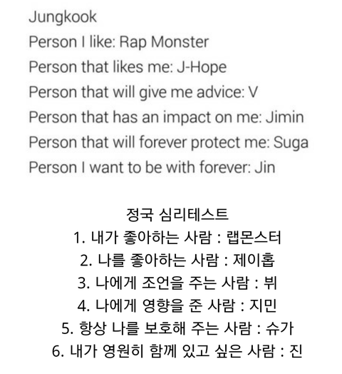 정국이는 질문 6개니까 적당히 멤버들 끼워맞춘듯ㅋㅋㅋㅋ