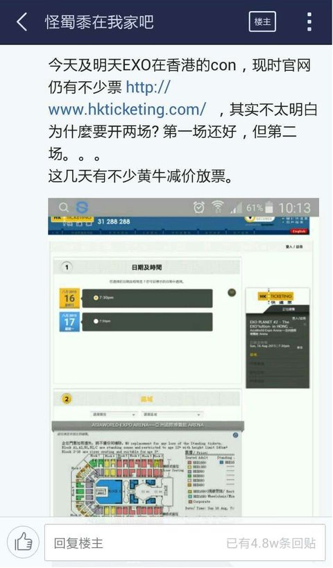 장난하냐? ㅋㅋㅋ알지도못하면서 중국인들은 사기가 많기땜에 거의 현장판매로 산다ㅋㅋㅋ 물론 저것도 다 현장판매로 매진시킴 그리고 저 부산콘은 엑소 단콘도아니고ㅋㅋㅋ 다른아이돌들 나오는콘서튼데 ㅋㅋㅋ 담날에 서울 상암에서하는 대한민국 콘서트에 엑소나와서 부산과 서울은 거리차도 있기 때문에 홈마들도 부산에서하는콘 몇가지도않음그런데도 부산콘 거의엑소팬으로 우글우글했음ㅋㅋㅋ ㅋㅋㅋㅋ저기보다 더큰상암콘서트장에서 빽빽이채움^^작작해 ㅋㅋㅋㅋㅋㅋ
