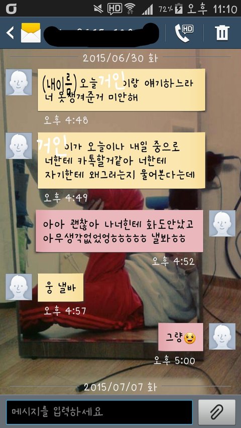 ㄱ이한테 문자가 온거였어 그냥 ㄱ이랑 싸우기도싫고..