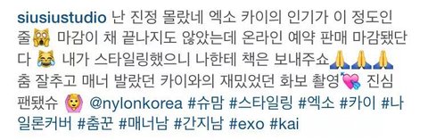 카이 인기에 놀라신 나1론스타일리스트님 트윗