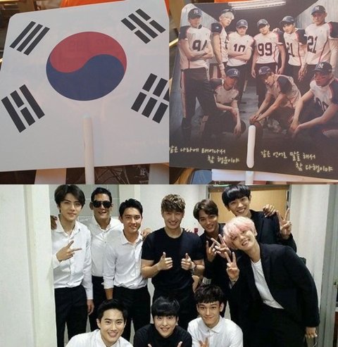 엑소는 15일 서울 마포구 성산동 상암 월드컵경기장에서 열린 KBS 광복70년 국민대합창 ‘나는 대한민국’에 출연했다. 엑소는 김연아와 H.O.T.의 노래 ‘빛’을 열창하는가 하면, 선배 그룹 지오디(god)와 무대에 함께 올라 팬들의 가슴을 뭉클하게 만들었다.