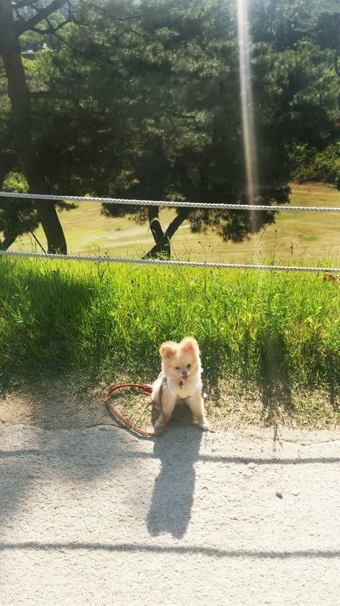 산책 더 하고 싶은데 앉혀놔서 기분 안 좋아진 크림이ㅎㅎㅎㅎ