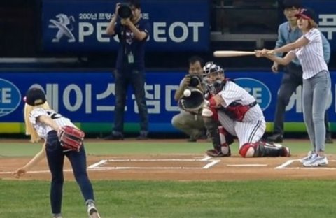 보통 여자 연예인들은 투수들이 공 던지는