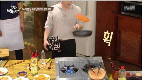 1분 30초부터 백주부의 김치전 뒤집기 성공여부를 확인할 수 있으므로