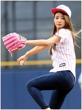 주말에 완벽한 시구를 선보인 보미