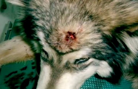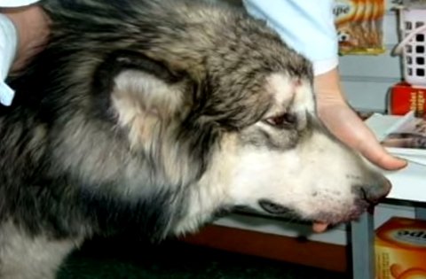 가해자는 이미 도주한 상태로 말라뮤트 귀와 이마가 찢어지고 정수리 부분 뼈가 함몰되어 신음을 토하며 피를 쏟고 있었다. 신고를 받고 출동한 경찰은 말라뮤트를 구조했고, 중상을 입은 말라뮤트는 병원에 실려가는 동안 신음 한 번 않고 고통을 참아냈다. 동물병원으로 옮겨진 후 진찰 결과 열이 40도였으며, 정수리 뼈가 3cm 정도 완전히 으스러진 상태로 지혈제를 투여했으나 출혈은 멈추지 않았다.