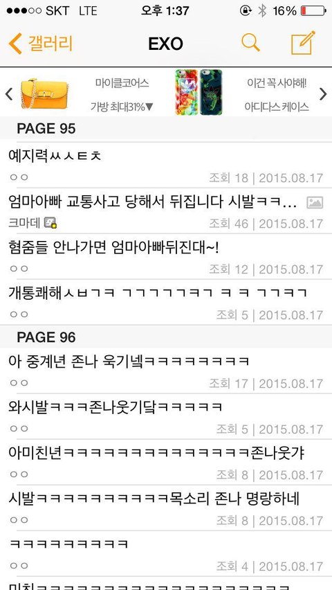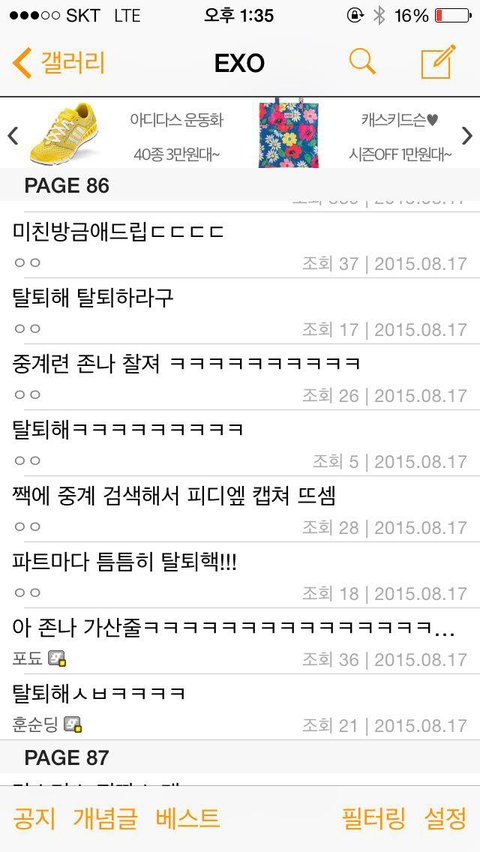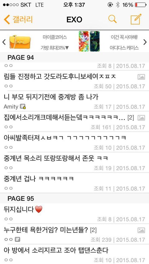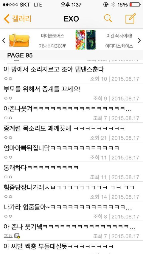 엑소 갤러리에서 17일 홍콩 콘서트 생중계 하는 갤러가 나옴