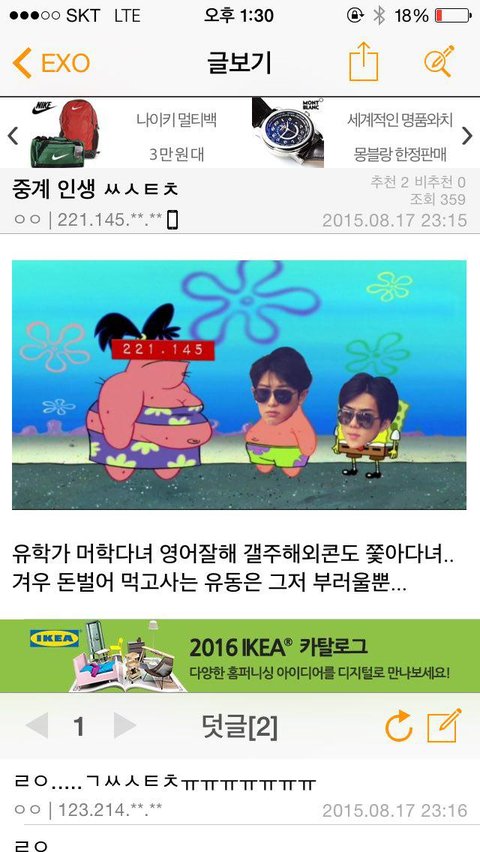 생중계 제목 : 변백현 강아지 해봐 이름부터 저렇게 걸어놓고 중계 시작, 동영상 내용은 1.(멤버에게 욕설)아뭐야씨1발개2씨3발성기4같은새5끼2.(위아 원 위아원 하는 팬들한테 ) 누구때문에 씹1지랄이 났는데 위아원이야 짱1깨1년들이 위아원이야 뭘 위아원이야 닥1쳐라 3.(엠1창인생 들먹거리면서 렛미 인트로듀스 마이셀프 함) 대학 다 가고 유학도 갔는데 엑소보러 취미로 홍콩온 ~ (와서 한건 욕밖에 없음;;; ) 4. (특정멤버) 팬여러분 어머니 아버지...;; 차마 입에 담지도 못함;엑소 갤러리 반응은 더 웃김;