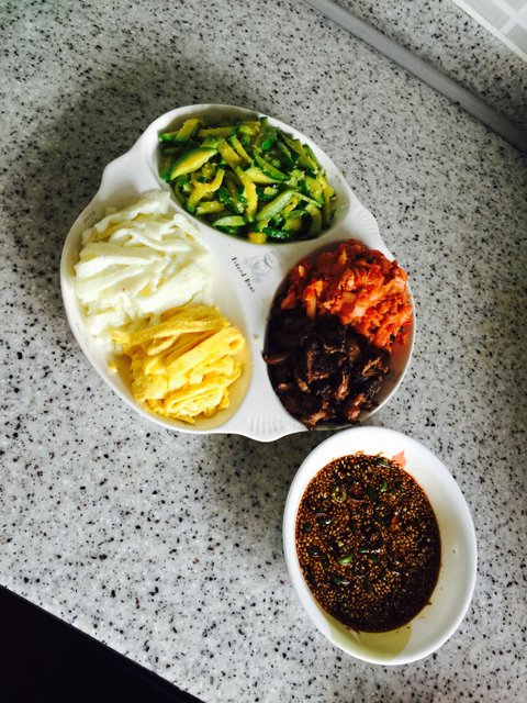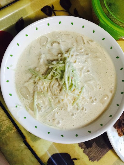 이건 티비보다가 우연히 쉽게콩국수 하는법 보게됬는데 맛도잇고 진짜간편햇어요~ 두부랑 땅콩잼조금넣고 소금간하구 믹서기에갈면 콩국 금방 완성이더라구요 ㅋㅋ 위에오이는 멋낸다고 ..ㅋㅋㅋ