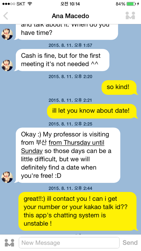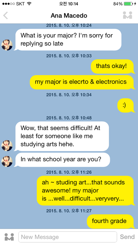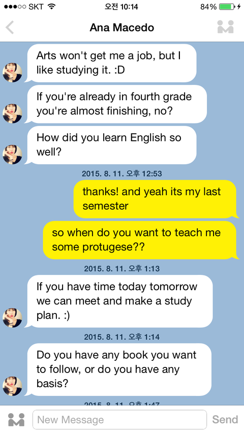 톡으로 얘기하다가 서로 관심사가 비슷해서 사귀게 됐다.