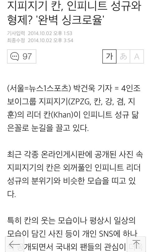 지피지기 칸 사진들을 계속보니깐 인피니트 성규랑 너무너무 많이닮았당~^^ 인피니트와엑소처럼 빨리빨리 뜨기를 기대합니당~